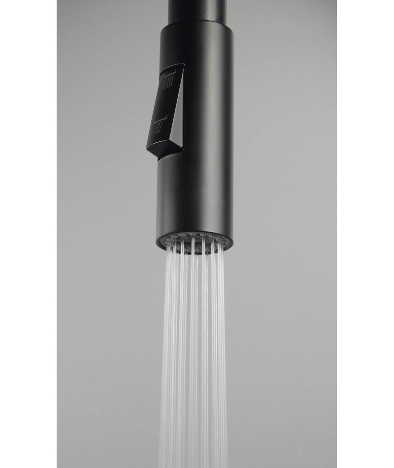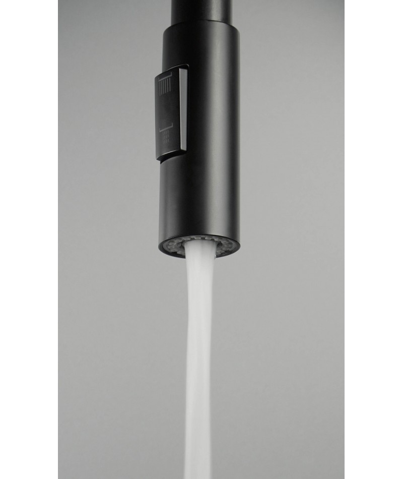 Elastyczna wylewka wykonana z wysokiej jakości silikonu to praktyczne i nowoczesne rozwiązanie, które doskonale sprawdzi się w codziennym użytkowaniu. Zakończona jest funkcjonalną słuchawką z możliwością przełączania między dwoma strumieniami wody: napowietrzonym oraz deszczowym. Strumień napowietrzony idealnie nadaje się do codziennego zmywania, natomiast tryb deszczowy świetnie sprawdza się przy płukaniu warzyw i owoców, zapewniając delikatne, ale skuteczne oczyszczanie. Elastyczna konstrukcja ułatwia manewrowanie wylewką, co znacząco zwiększa komfort pracy. Produkt pasuje do serii baterii zlewozmywakowych LUNO.