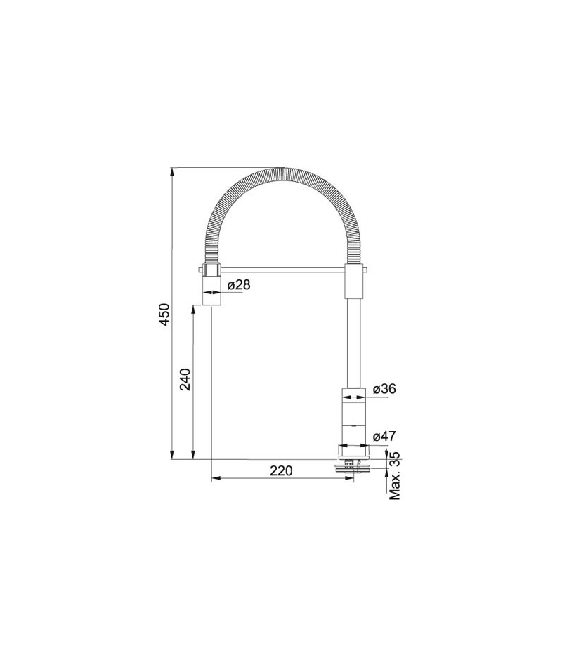▪ wężyki podłączeniowe o dł. 350 mm ▪ głowica ceramiczna ∅35 mm ▪ Obrót wylewki w stopniach : 360° ▪ Zasięg wylewki : 220 mm ▪ Podkładka usztywniająca do montażu w zlewozmywakch ze stali szlachetnej w komplecie ▪ sterowanie : dźwignia z boku mieszacza