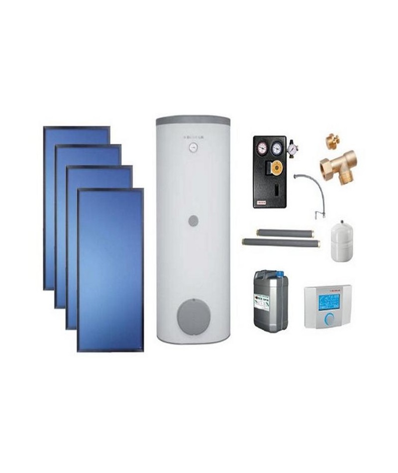 Zestaw solarny na bazie kolektorów płaskich NIBE Solar FP 215P, przeznaczony do przygotowania ciepłej wody użytkowej w gospodarstwach domowych 5-6 osobowych. W zestawie znajduje się wymiennik do c.w.u. z dwiema wężownicami Mega Solar Klasa A o pojemności 400l.
