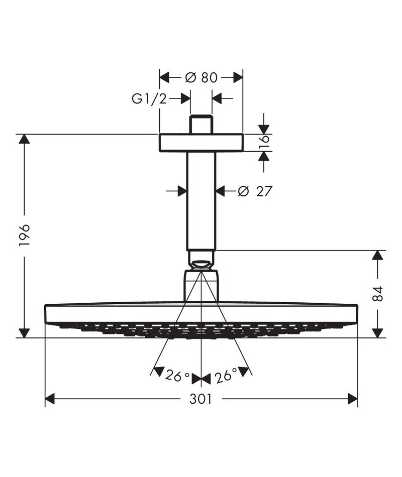Głowica prysznicowa HANSGROHE Raindance Select S 300 2jet z przyłączem sufitowym 100 mm DN15 biały/chrom
