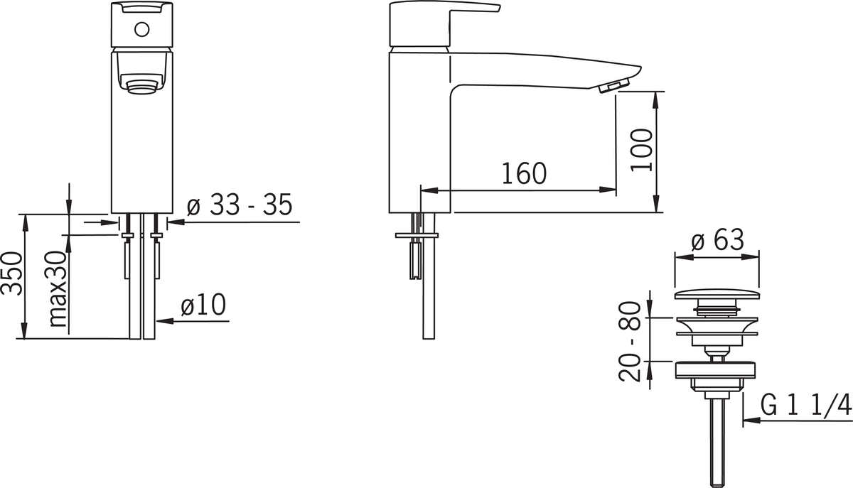 Jednouchwytowa bateria umywalkowa z zaworem spustowym.