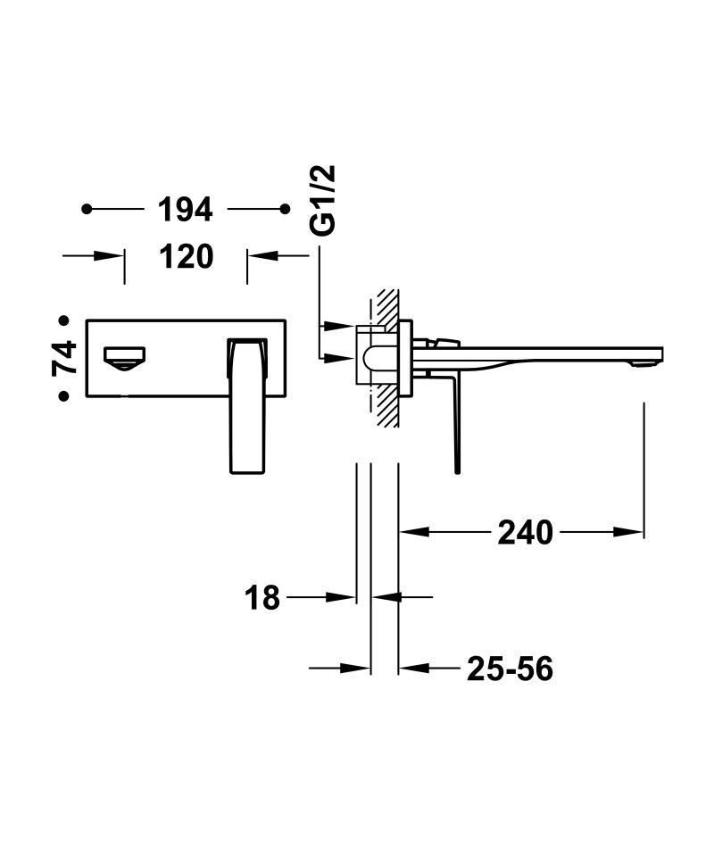 Bateria umywalkowa TRES stojąca Slim-Tres podtynkowa, ścienna, długość wylewki 240 mm, chrom