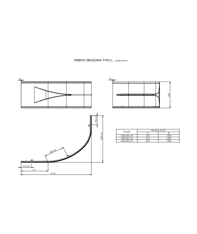 Obudowa typu " L" lewa do wanny akrylowej