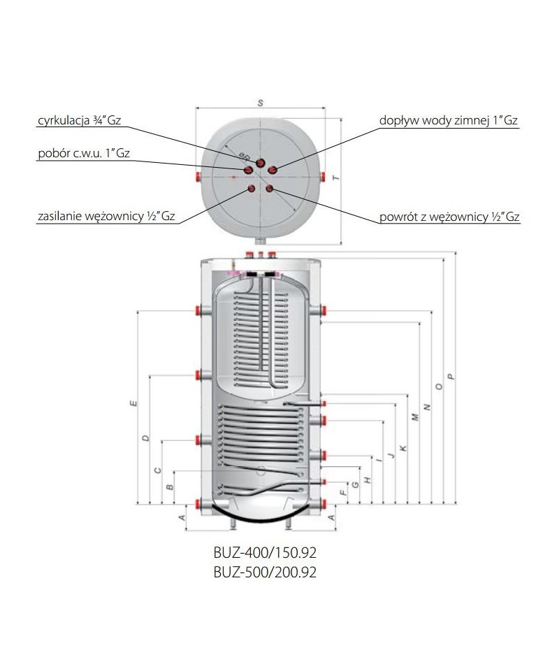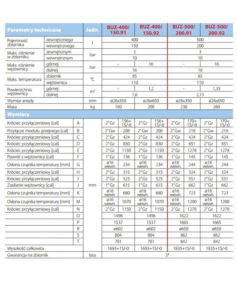 • duże powierzchnie grzejne oraz odpowiedni kształt wężownic, zapewniają dużą wydajność c.w.u. i równomierny rozkład temperatur w zbiorniku