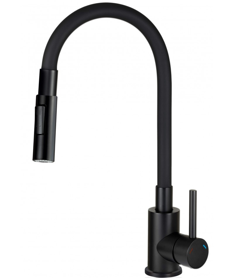 Bateria LUNO posiada elastyczną wylewką i 2-funkcyjną słuchawkę. Elastyczna wylewka umożliwia regulowanie wysokości strumienia oraz ułatwia napełnienie wysokich naczyń wodą. Słuchawka posiada 2 rodzaje strumienia: napowietrzony i deszczowy. Ten drugi, idealnie nadaje się do opłukiwania warzyw, owoców, czy też dokładnego czyszczenia komory zlewozmywaka.