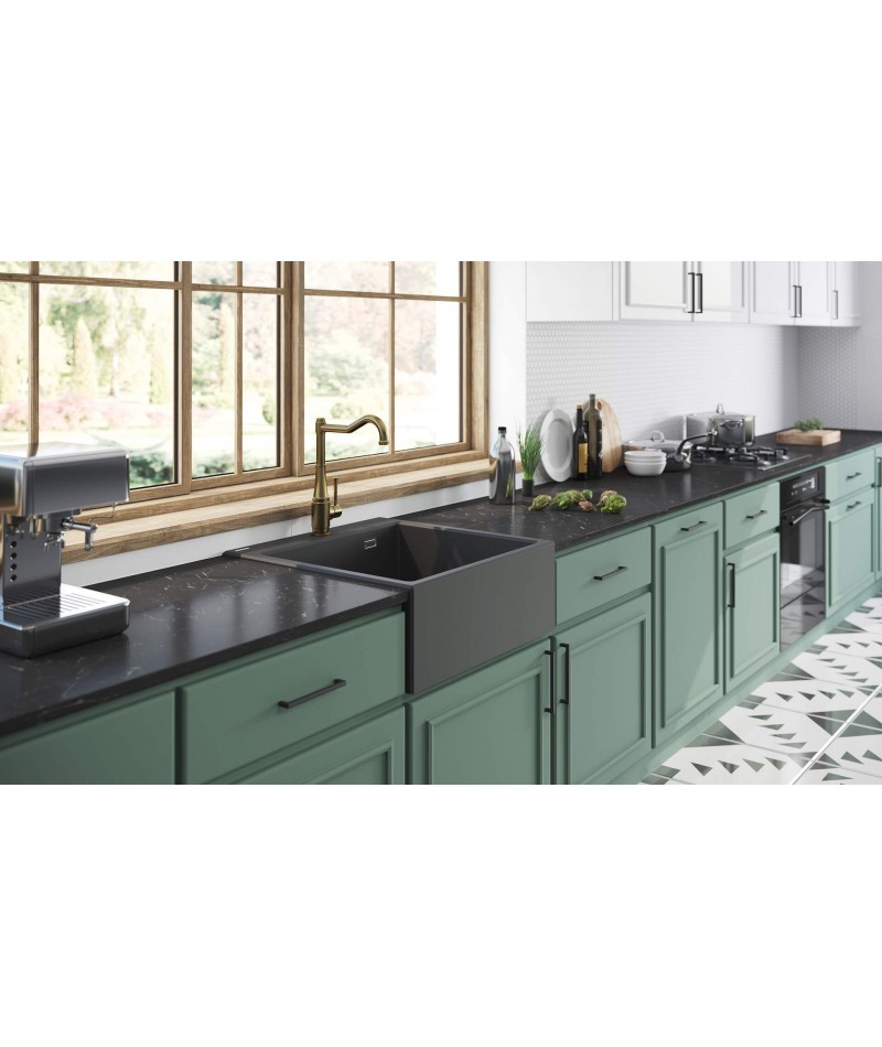 Marzy Ci się kuchnia w stylu retro? Katarzyna Łogwinienko zaprojektowała baterię, która z powodzeniem łączy sentyment minionych epok z najnowszymi rozwiązaniami technologicznymi. Korpus baterii wykonany jest z wysokiej jakości mosiądzu, co docenią wielbiciele drogocennych i stylowych dodatków. Dekoracyjna, ruchoma wylewka doskonale sprawdzi się przy zlewozmywakach dwukomorowych oraz przy napełnianiu wodą wysokich naczyń. Ruchomy aerator zamontowany na końcu wylewki umożliwia przekierowanie strumienia, napowietrza go i tym samym ogranicza zużycie wody.Bateria Tamizo występuje, aż w 5 modnych wykończeniach: chrom, titanium, nero, złoty i mosiądz.
