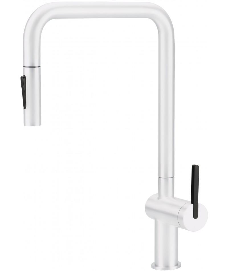 Bateria kuchenna Momi, wykonana z wytrzymałej stali nierdzewnej, wyróżnia się prostokątną wylewką, która nadaje jej wyjątkowego charakteru. Dzięki wbudowanemu aeratorowi, woda jest napowietrzana, co pozwala zredukować jej zużycie. Wyciągana wylewka zapewnia wygodę w codziennym użytkowaniu, umożliwiając swobodne manewrowanie wodą podczas czynności w strefie zlewozmywaka. Dodatkowo, bateria posiada dwa rodzaje strumienia: napowietrzony do codziennego mycia oraz delikatny strumień deszczowy, doskonały do płukania warzyw i owoców. Bateria Momi, wykończona w matowym, białym kolorze wprowadza do kuchni subtelną elegancję i nowoczesną lekkość.