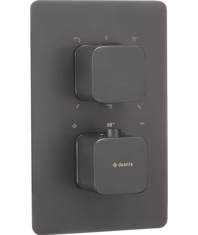 Zewnętrzny element do BOX-a termostatycznego w wykończeniu titanium to kwintesencja nowoczesnego designu i funkcjonalności, jaką oferują podtynkowe systemy instalacyjne. Podtynkowa instalacja pozwala ukryć techniczne elementy armatury, takie jak rury czy złączki, pozostawiając na widoku jedynie to, co najpiękniejsze: precyzyjnie wykonane, designerskie detale.Efekt? Stylowa, uporządkowana przestrzeń, która zachwyca estetyką i ułatwia codzienną pielęgnację.BOX termostatyczny sprzedawany oddzielnie.