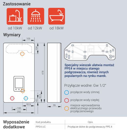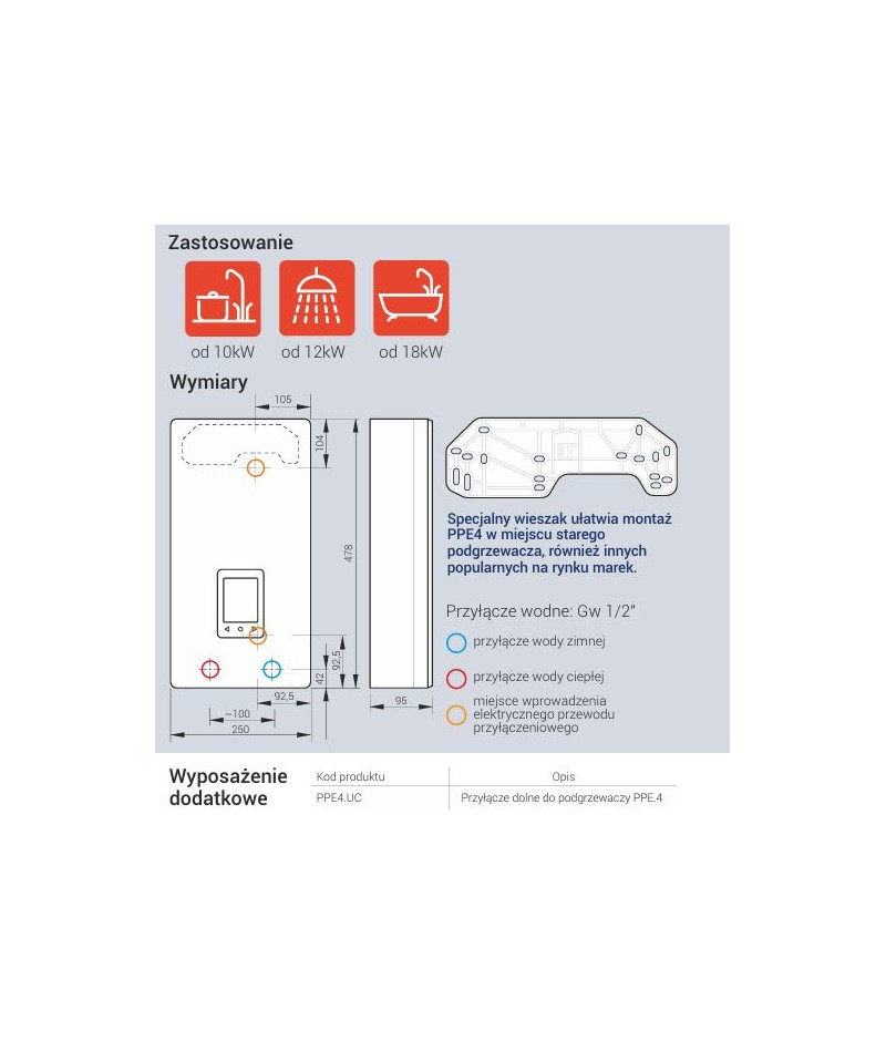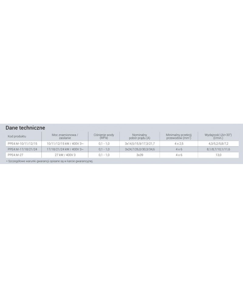 Z naszym elektrycznym przepływowym podgrzewaczem wody PPE4.M z elektronicznym sterowaniem i wyświetlaczem cieszysz się wygodą i komfortem w każdej chwili. Ten 3-fazowy model dostarcza ciepłą wodę do kilku miejsc jednocześnie, co zapewnia Ci maksymalny komfort w codziennym użytkowaniu.