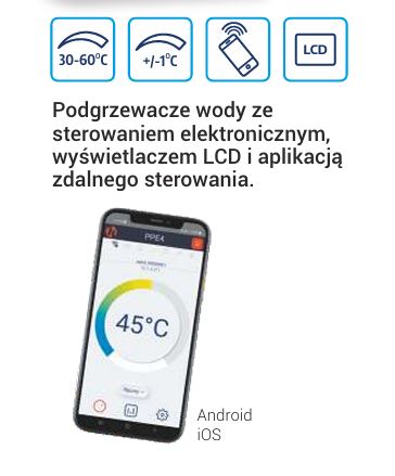 Podgrzewacz wody ze sterowaniem elektronicznym, wyświetlaczem LCD i aplikacją zdalnego sterowania.