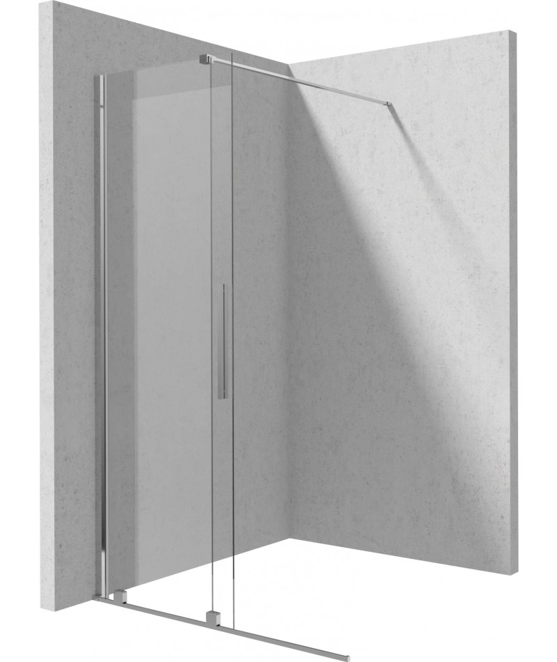 Walk-in Prizma 120 cm przystosowany jest do montażu na brodziku lub bezpośrednio na płytkach. Jest to model przesuwny, który dzięki swojej funkcjonalności zapewnia maksymalne poczucie swobody. Ścianka wykonana została z wysokogatunkowego szkła hartowanego i pokryta powłoką Active-cover. Eleganckie chromowe wykończenie idealnie współgra z armaturą w tym samym kolorze. W zestawie znajdują się dwa relingi – krótki i długi. Przy dodawaniu dodatkowych elementów do swojej konfiguracji (drzwi plus drzwi lub drzwi plus ścianka) nie zapomnij sprawdzić wymiarów wejścia na rysunku technicznym. Masz wtedy pewność, że wszystko będzie idealnie dopasowane.