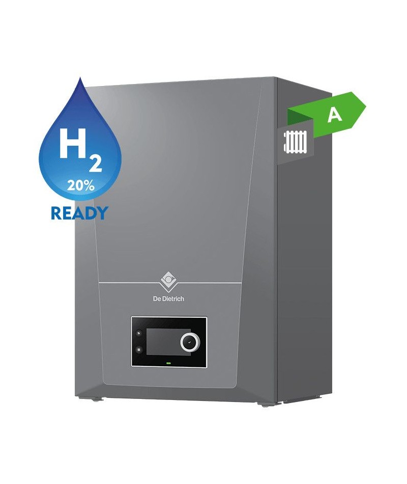 Naścienny gazowy kocioł kondensacyjny przystosowany do spalania gazu z 20% domieszką wodoru. Wyposażony do pracy z gazami ziemnymi z możliwością przestawienia na propan. Sprawdzony wymiennik wykonany ze stopu aluminiowo-krzemowego z unikalną 7-letnią gwarancją. Palnik gazowy ze wstępnym zmieszaniem, wykonany ze stali nierdzewnej o powierzchni ze splecionych włókien metalowych, modulujący od 20 do 100% mocy. Wentylator z tłumikiem zasysania powietrza, wyposażony w zawór zwrotny klapowy dla pracy z systemami odprowadzania spalin pod ciśnieniem, jako zabezpieczenie przed brakiem ciągu i do pracy kaskadowej ze wspólnym odprowadzaniem spalin. Sprawność przy częściowym obciążeniu do 108,9%. Zapłon elektroniczny i jonizacyjna kontrola płomienia. Nowe rozwiązanie ergonomii i optymalizacja