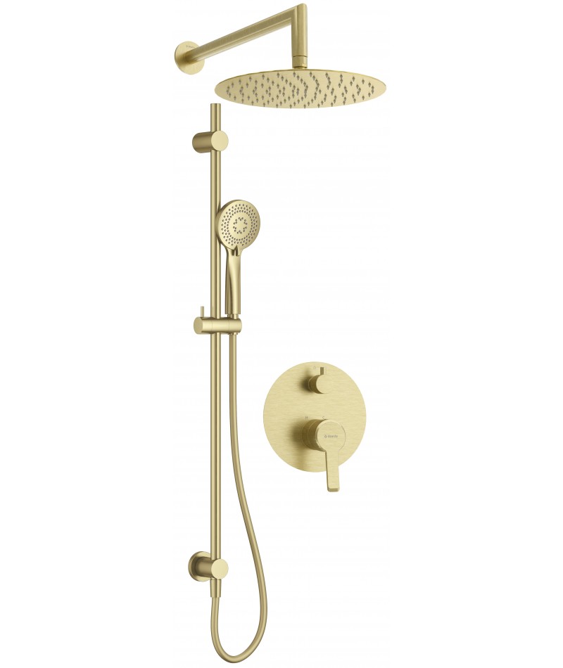 Komplet podtynkowy Arnika oferuje wyjątkową funkcjonalność i estetykę. Składa się z: zestawu natryskowego z przyłączem podtynkowym, podtynkowej baterii oraz wylewki i głowicy natryskowej. W skład natryskowego zestawu wchodzi słuchawka prysznicowa z wężem, umocowana na eleganckim drążku. Mosiężny uchwyt słuchawki jest regulowany, co pozwala na dostosowanie jej pozycji do indywidualnych potrzeb. Słuchawka oferuje trzy funkcje strumienia: deszczowy, hydromasaż i mieszany. System Anti-calc ułatwia utrzymanie jej w czystości, zapobiegając osadzaniu się kamienia. Podtynkowa bateria natryskowa z kolekcji Arnika to kwintesencja nowoczesności i elegancji. Posiada prostą dźwignię oraz mechaniczny przełącznik natrysku, umożliwiający łatwe przełączanie między deszczownicą a słuchawką prysznicową nawet przy małym strumieniu. Stalowa głowica z systemem Anti - calc posiada przyjemny deszczowy strumień. Komplet podtynkowy Arnika to harmonijne połączenie nowoczesnego designu, funkcjonalności i trwałości. Wykończony w szczotkowanym złocie idealnie komponuje się z trendami w aranżacjach premium.