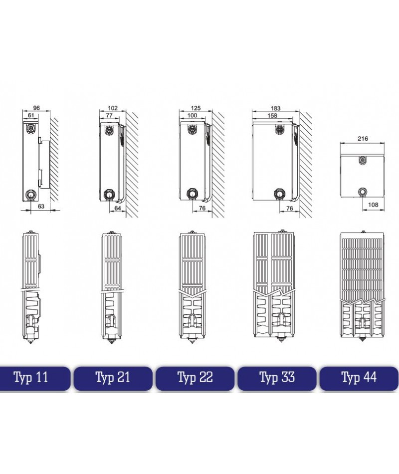 Zasilanie prawe lub lewe (dla typu 11 lewe opcjonalnie).